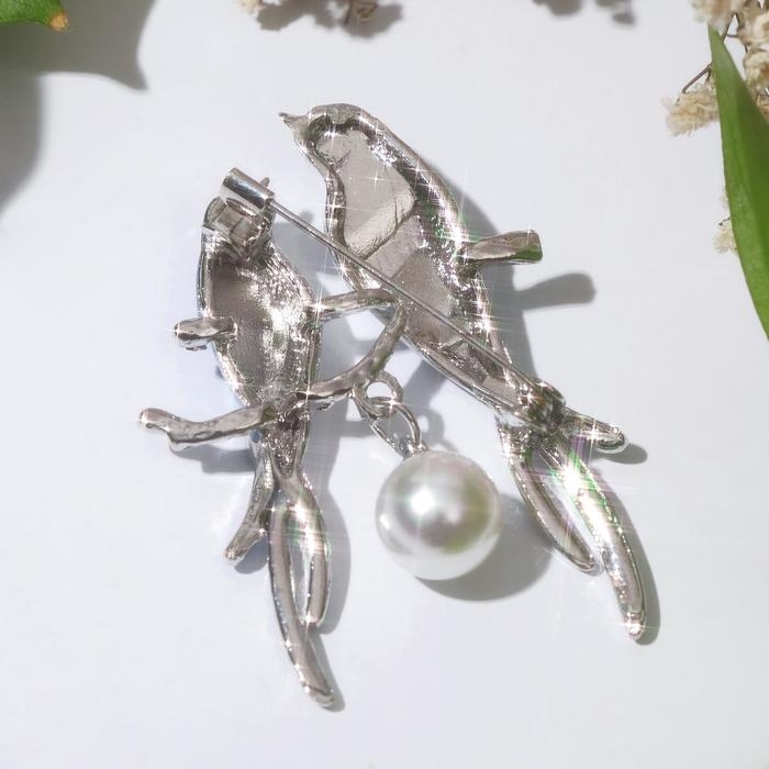 Брошь «Птицы» стрижи, цвет бело-синий в серебре