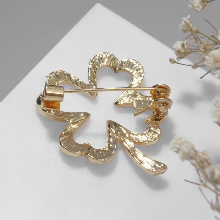 Брошь «Клевер» контур, цвет золото
