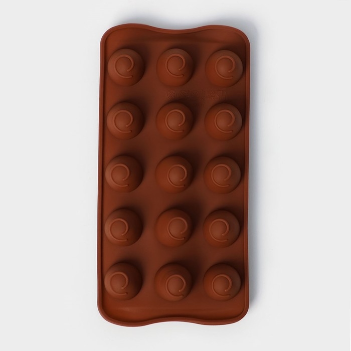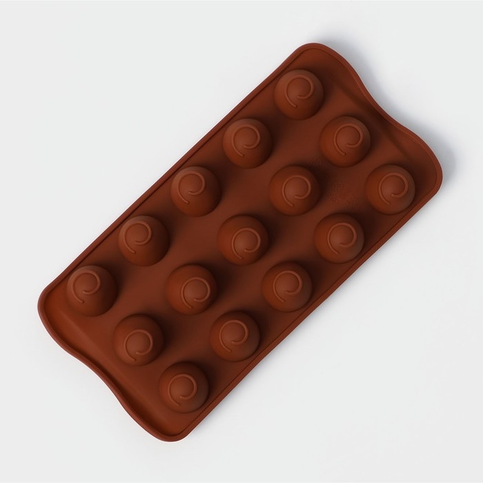 Форма для конфет и шоколада Доляна «Рондо», силикон, 21×10,5×3 см, 15 ячеек, цвет коричневый