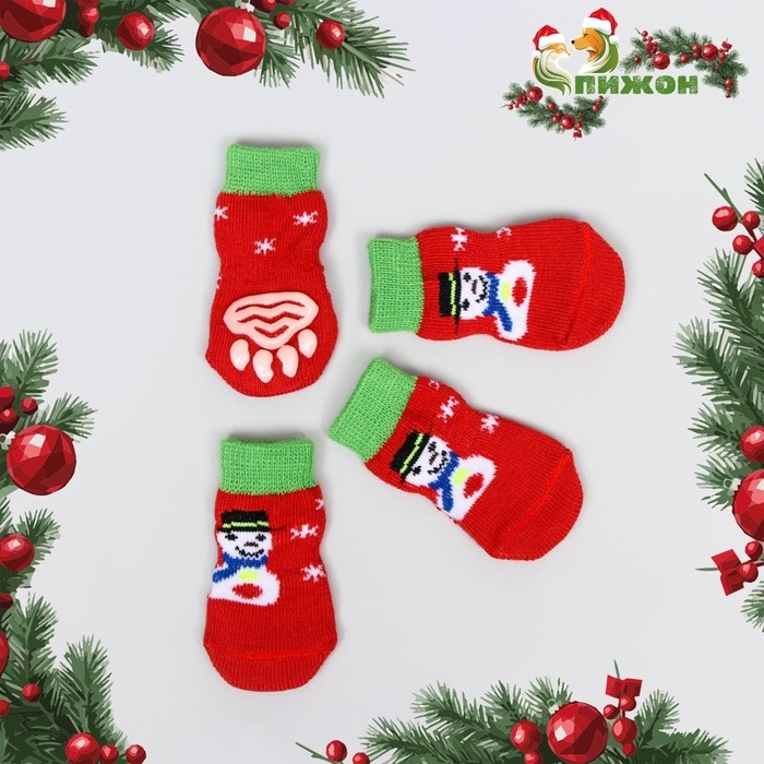 Носки нескользящие "Снеговики", M (3/4 * 7 см), набор 4 шт, красные