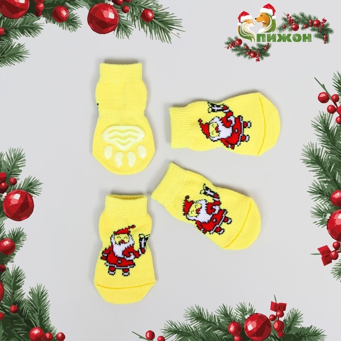 Новый год. Носки нескользящие "Дед Мороз", размер S (2,5/3,5 * 6 см), набор 4 шт