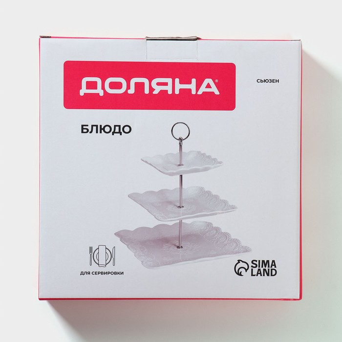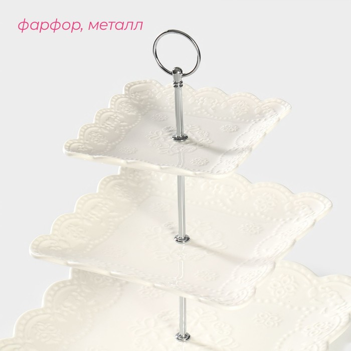 Этажёрка Фруктовница Доляна «Сьюзен», 3 яруса, 14,5/20/24,5 см, фарфор, цвет белый