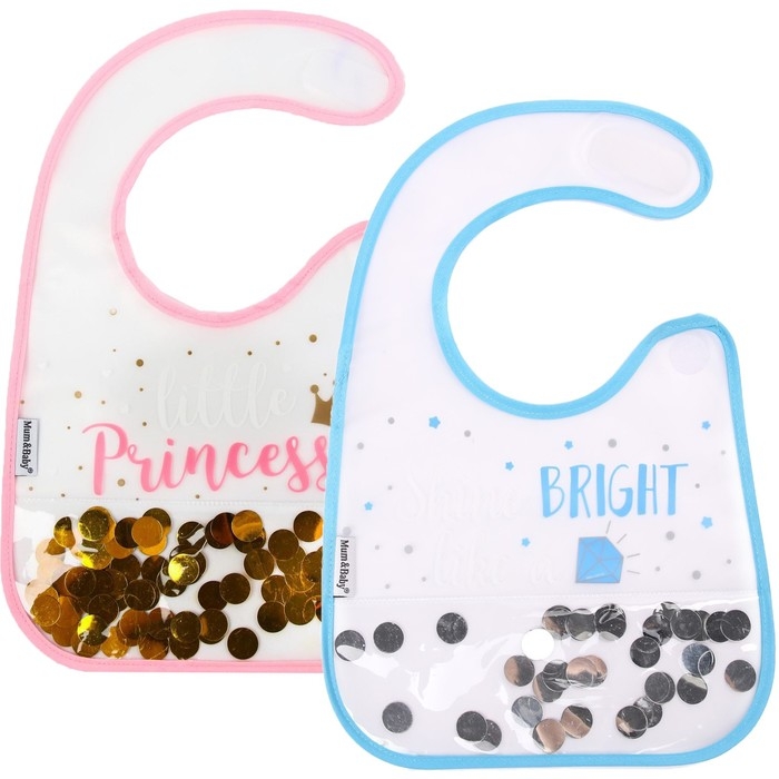 Нагрудник для кормления «Little» непромокаемый на липучке, внутри с конфетти, виды МИКС