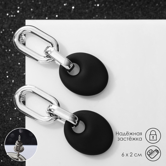 Серьги металл «Цепь» диск, 3 звена, цвет серебристо-чёрный