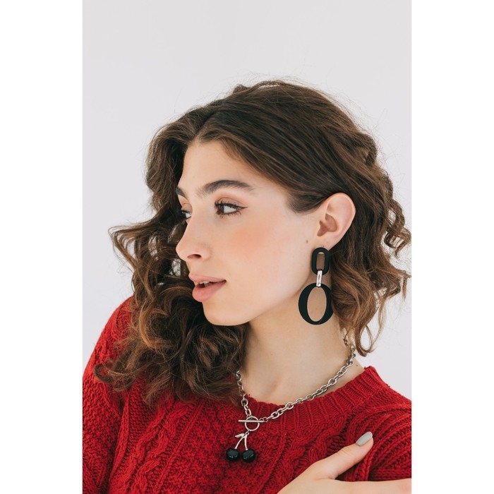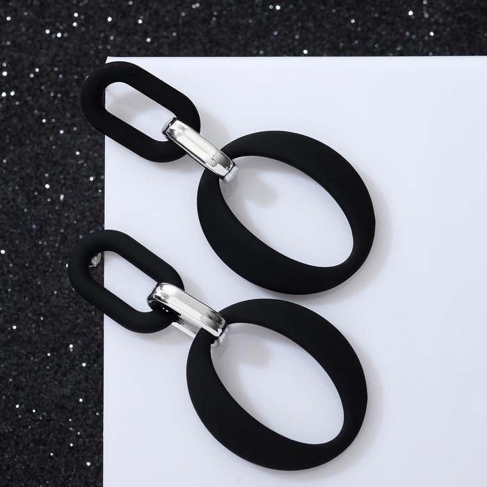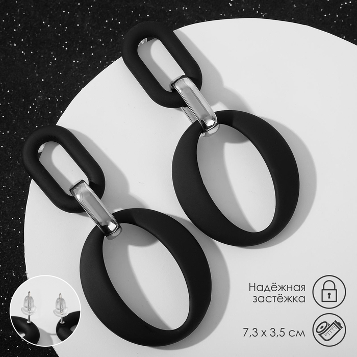 Серьги металл «Цепь» кольцо и овал, 3 звена, цвет серебристо-чёрный