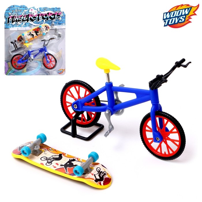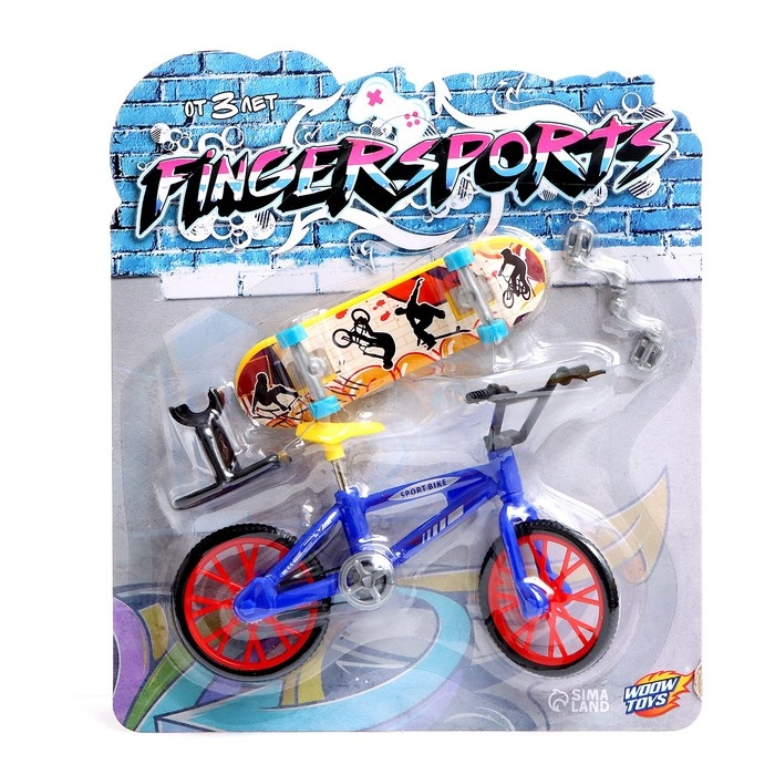 - В комплект входят фингерборд и фингербайк — уменьшенные версии скейтборда и велосипеда.