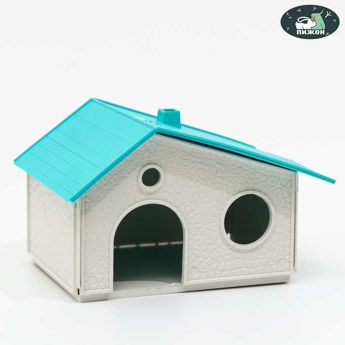 Домик для грызунов сборный "Нора" 9 х 13 х 10, белый с бирюзовой крышей