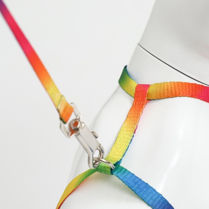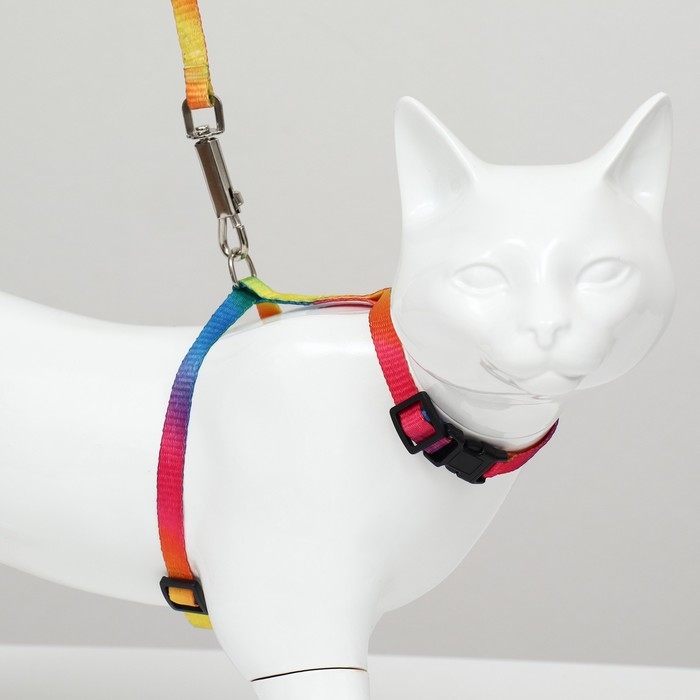 Комплект для кошек "Радуга", ширина 1 см, ОШ 16,5-27, ОГ 21-35 см, поводок 120 см