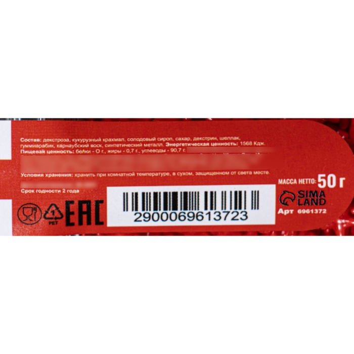 Состав: сахар, кукурузный крахмал, мука пшеничная, мука рисовая, декстроза, мальтодекстрин, пищевой ароматизатор, пищевые красители.