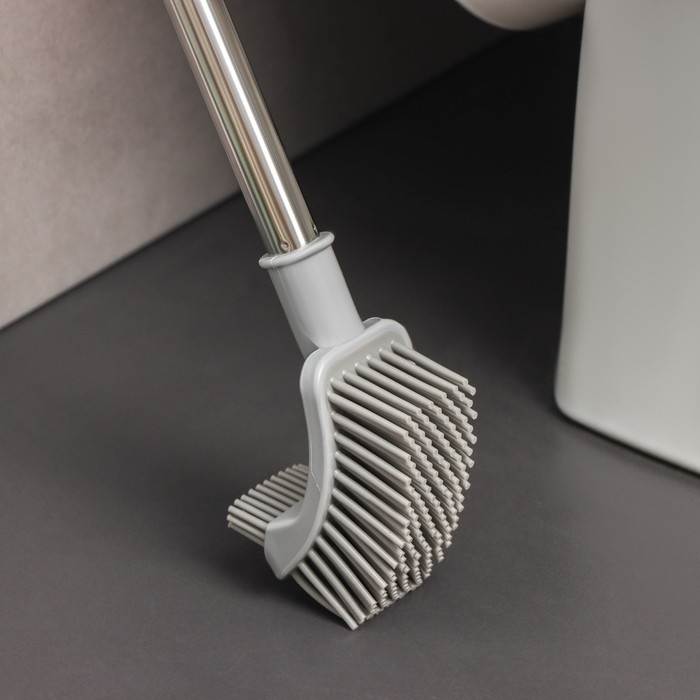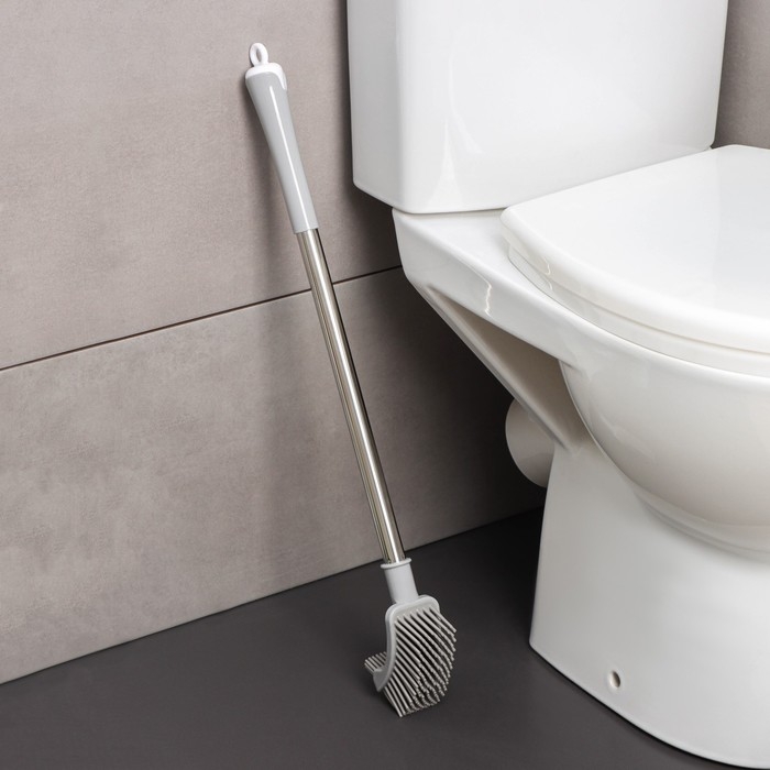 Ёршик для унитаза Доляна, силиконовый, 10×5×58 см, цвет серый