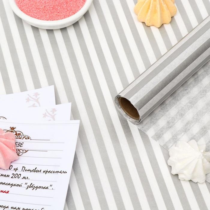 Бумага силиконизированная «Полоски», серебряные, для выпечки, 0,38 х 5 м