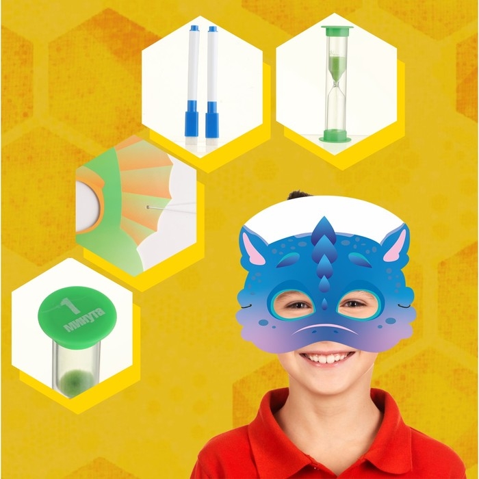 Настольная игра "Угадай, кто же Я?" для детей и всей семьи, набор: 7 масок, 2 маркера, часы