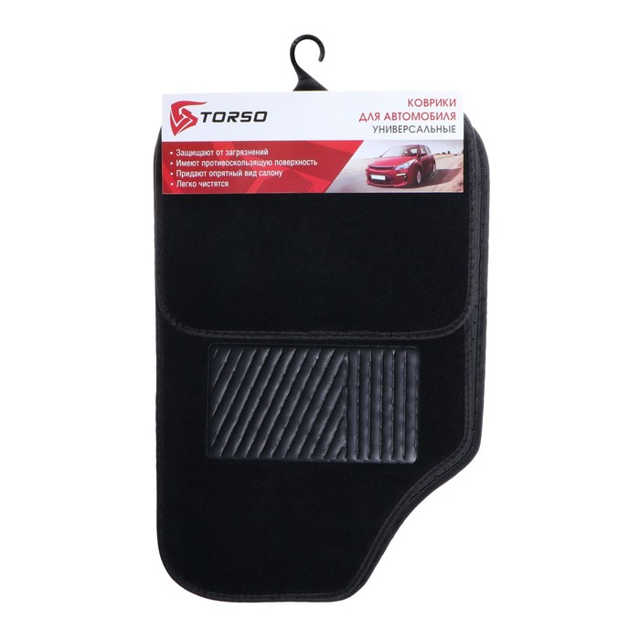 Коврики автомобильные TORSO, ворс, 62×42 см, 43×30 см, черный, набор 4 шт