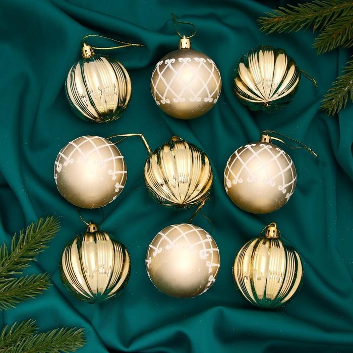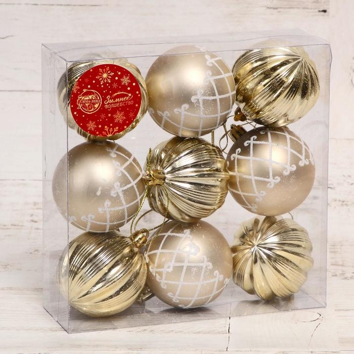 Набор шаров пластик d-6 см, 9 шт "Мелитина полосы" золото