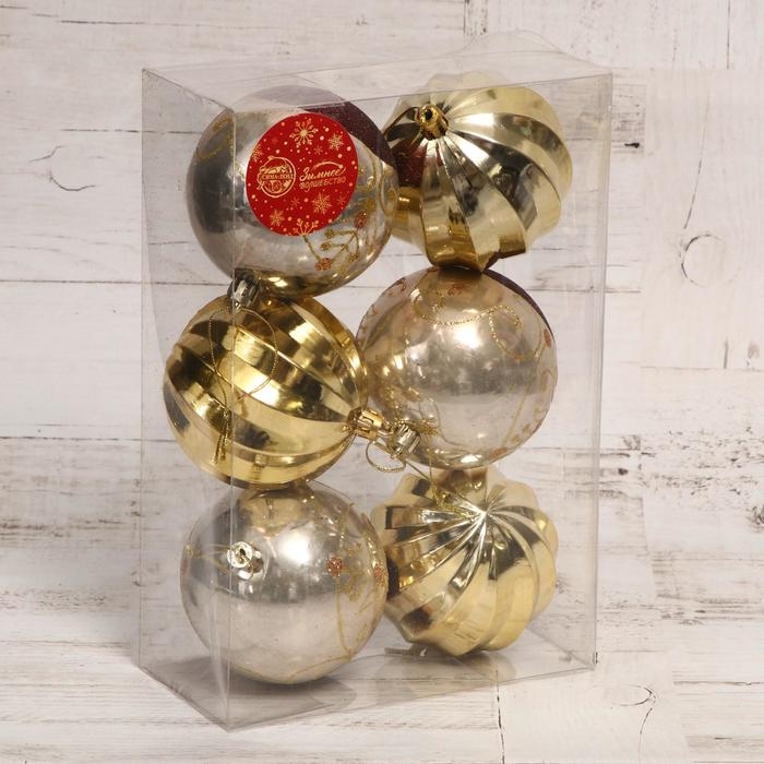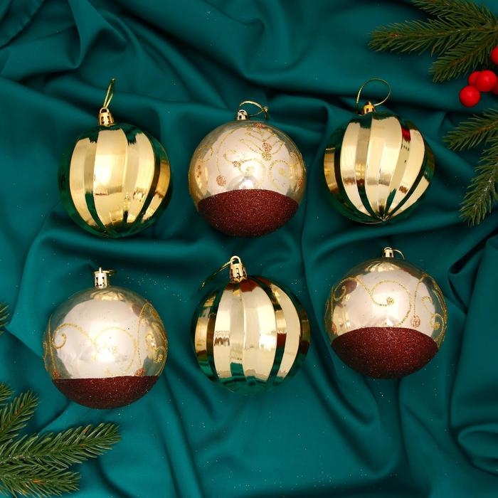 Набор шаров пластик d-8 см, 6 шт "Гелиан полосы" золотисто-коричневый