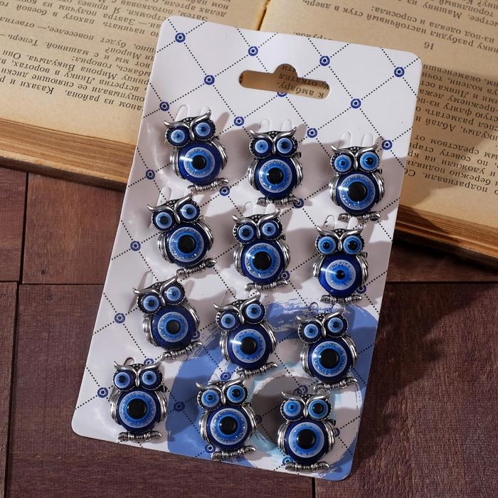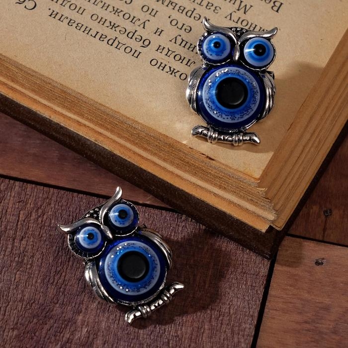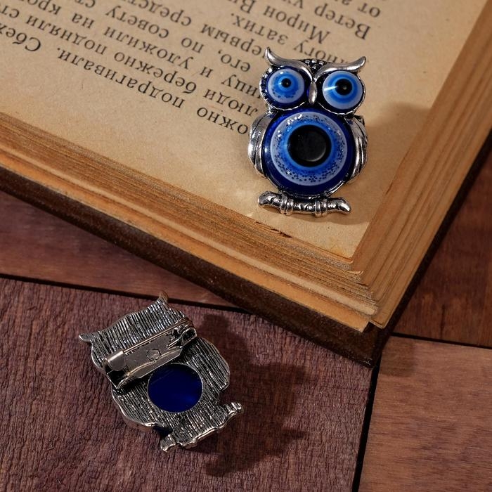 Брошь-оберег «Сова» глазки, цвет синий в чернёном серебре (неделимая фасовка 12 шт., цена за шт.)