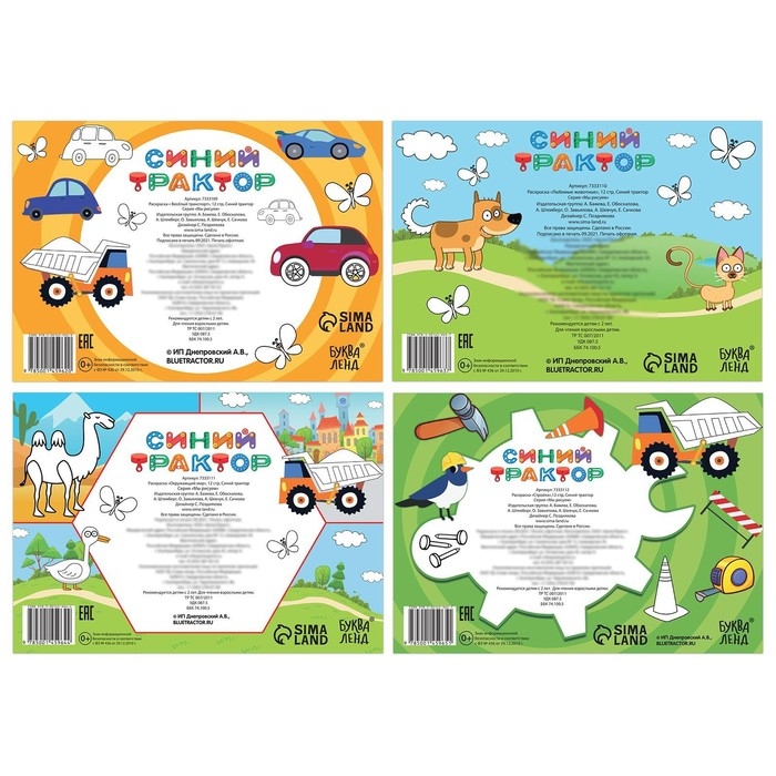 Набор раскрасок «Синий трактор», 4 шт. по 12 стр.