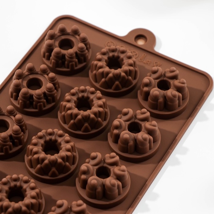 Форма для конфет и шоколада «Дольче», силикон, 20×11×1,8 см, 15 ячеек, цвет коричневый