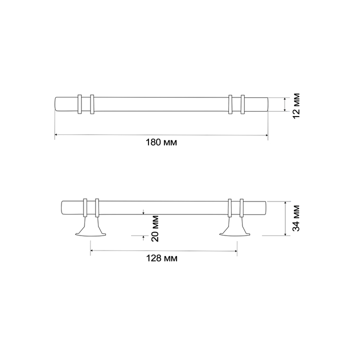 Ручка рейлинг ТУНДРА, облегчённая, d=12 мм, м/о 128/200 мм, внеш ножка, цвет графит