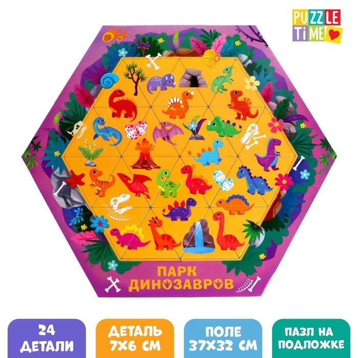 Фигурный пазл «Парк динозавров», на подложке, 24 детали