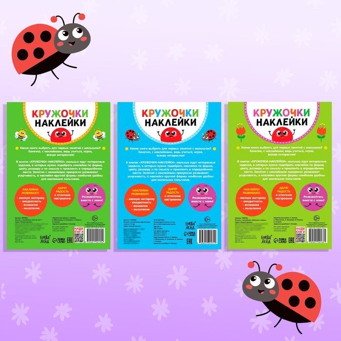 Набор обучающих книг с наклейками создан для самых маленьких читателей. Приклеивая яркие кружочки, ребёнок узнает многое об окружающем его мире и потренирует ловкость пальчиков, внимательность и аккуратность.