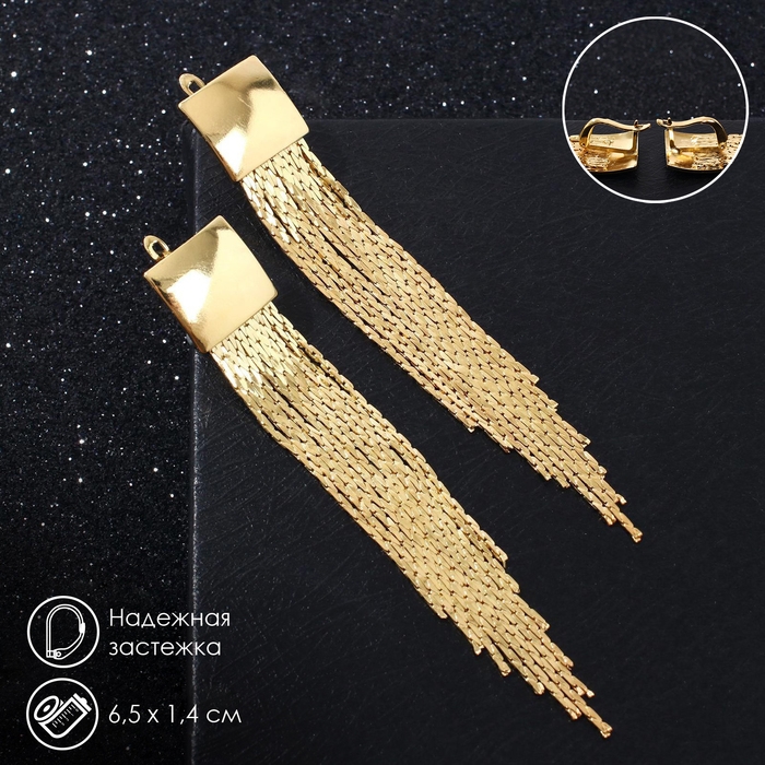 Серьги висячие «Голливуд» квадрат и нити, цвет золото, 6,5см