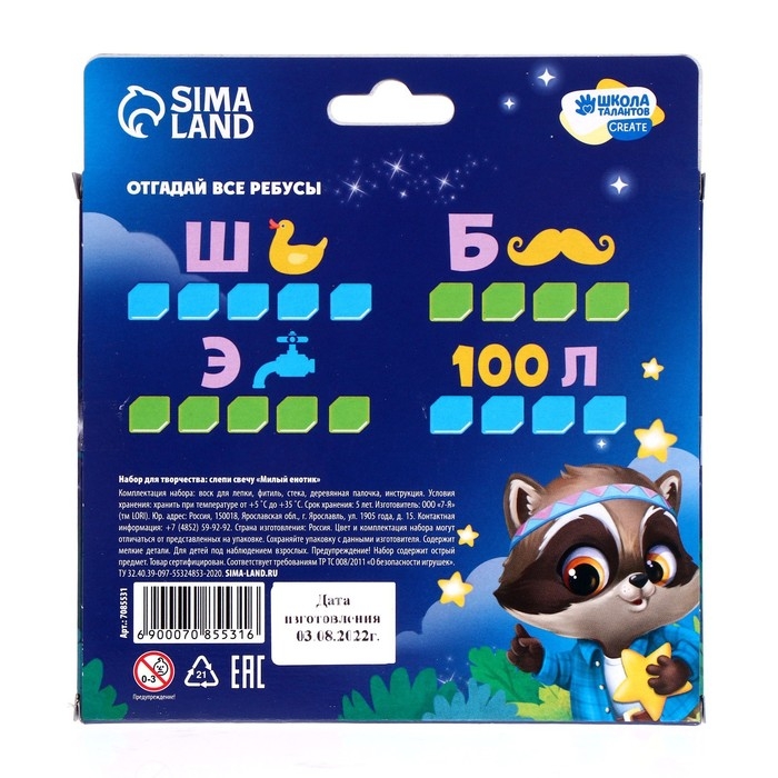 Свеча своими руками. Слепи свечу «Милый енотик», набор для творчества