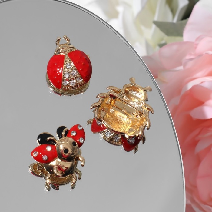 Брошь «Божья коровка» форма МИКС, цвет красно-чёрный в золоте (неделимая фасовка 12 шт., цена за шт.)