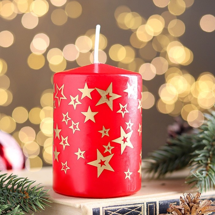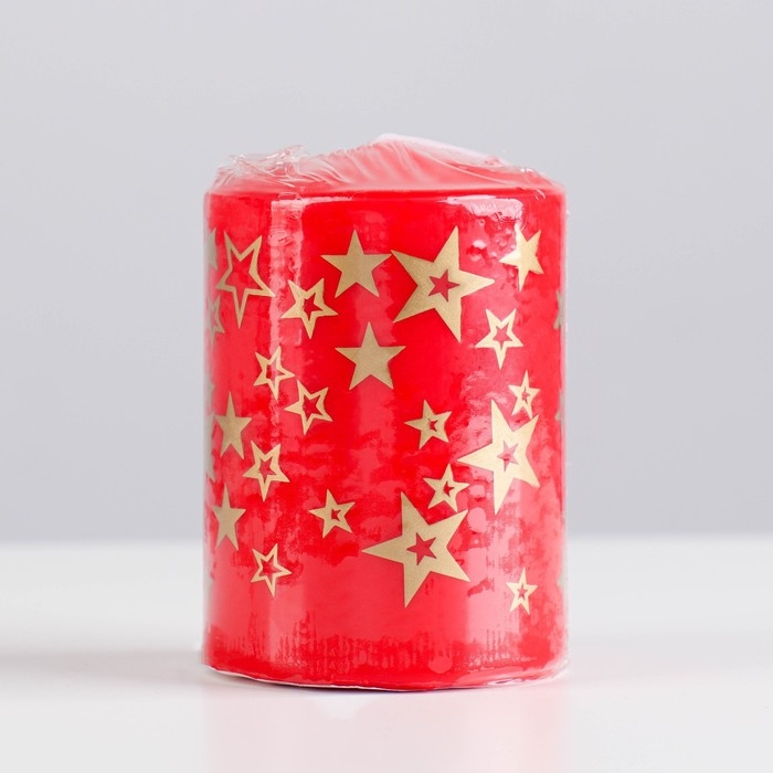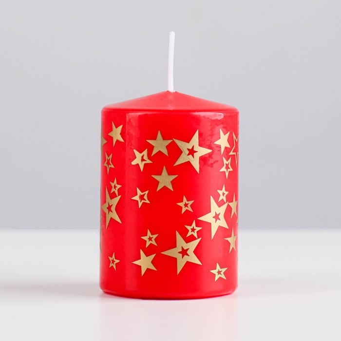 Свеча - цилиндр с узорами "Звезды", 5,6х8 см, красная с золотым