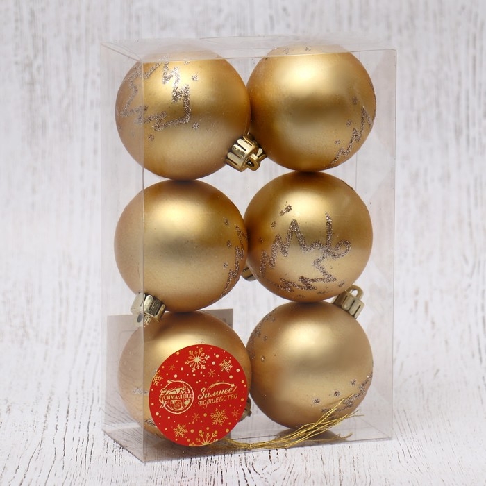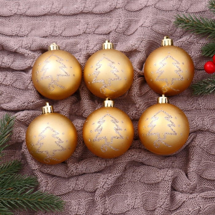Набор шаров пластик d-6 см, 6 шт "Лиа ёлочки" золото