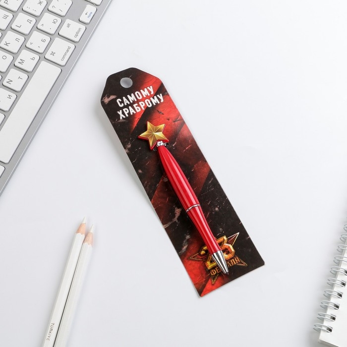 Ручка шариковая синяя паста «Самому храброму», пластик, со звездой на подложке-погон