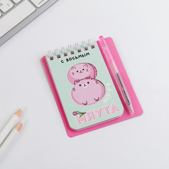 Набор «С 8 мяута» 9 х 10,4 см: блокнот и мини-ручка