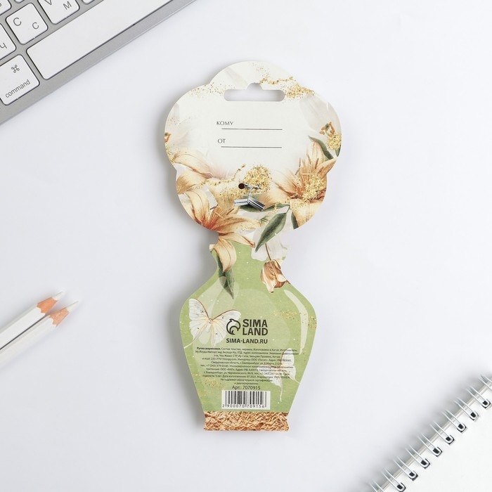 Ручка шариковая синяя паста «Самой лучшей»,пластик, с цветок, на подложке-ваза