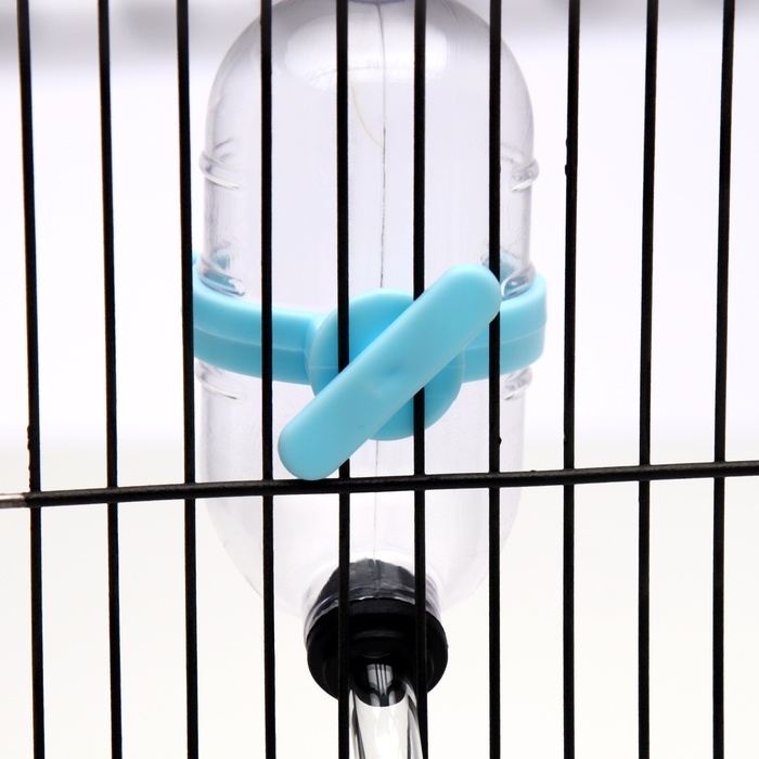 Поилка для грызунов, 60 мл, прозрачная с голубым креплением