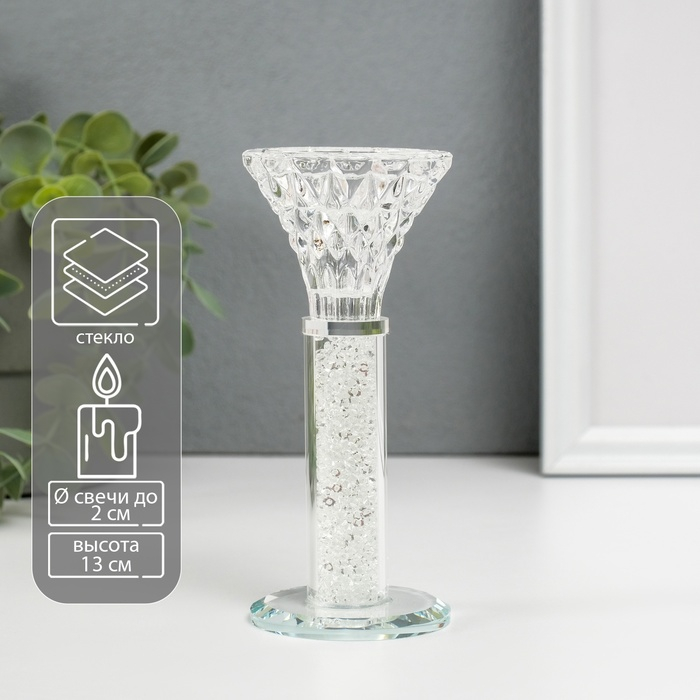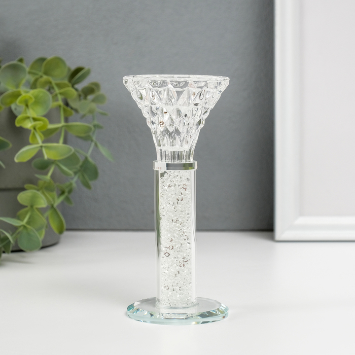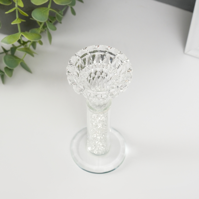 Подсвечник стекло на 1 свечу "Тюльпан с белыми шариками" прозрачный 13х6х6 см