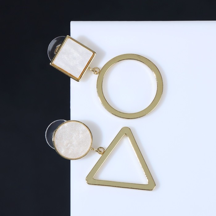 Серьги с перламутром «Волшебство» геометрия, цвет белый в золоте