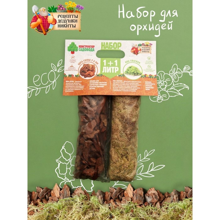 Набор для орхидей Кора сосны 2-6 фр + Мох сфагнум "Рецепты Дедушки Никиты" 1+1 л.