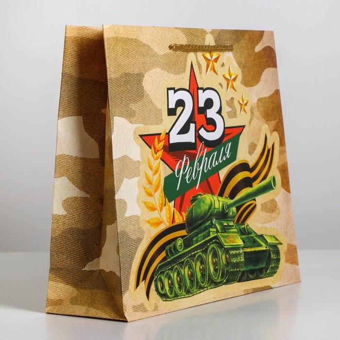 Пакет подарочный ламинированный горизонтальный, упаковка, «Танк», ML 25 х 21 х 8 см