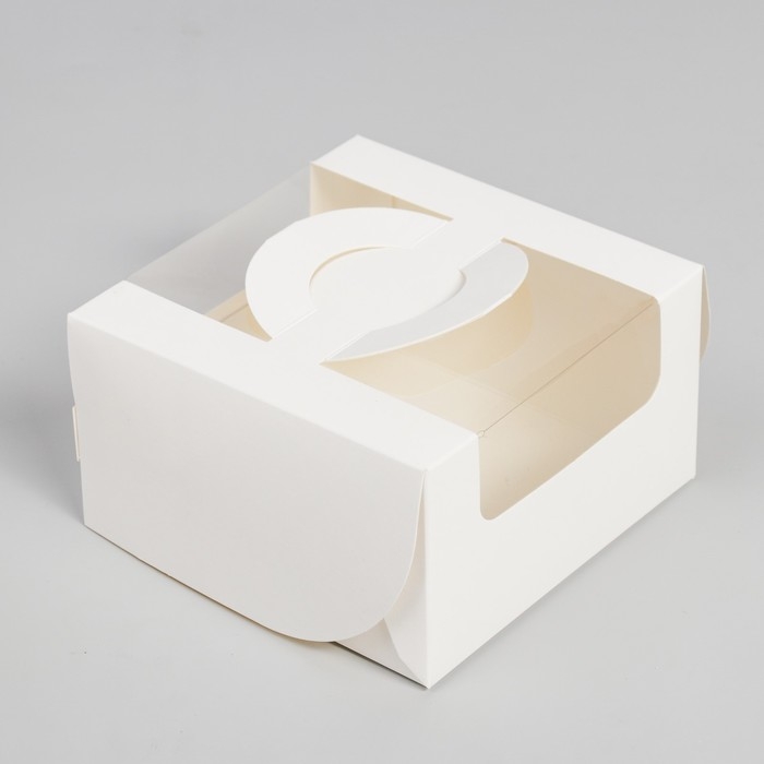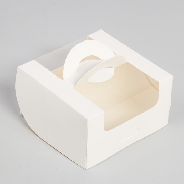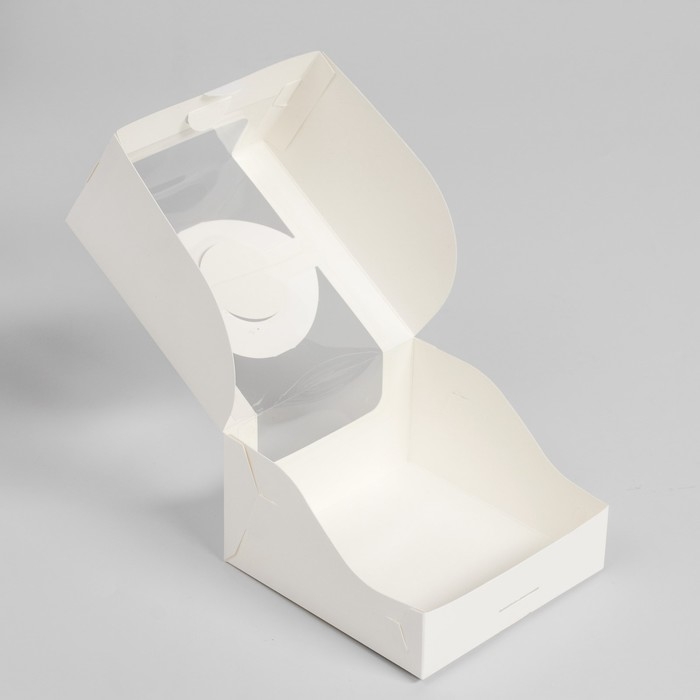 Коробка под торт, белая, с окном, 18 х 18 х 22 см