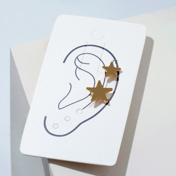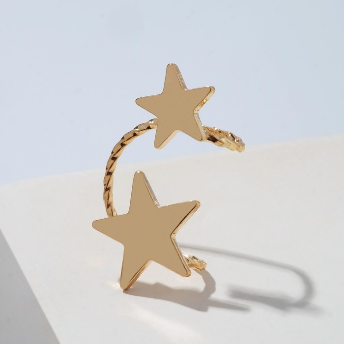 Серьга «Кафф» две звезды, петелька, цвет золото