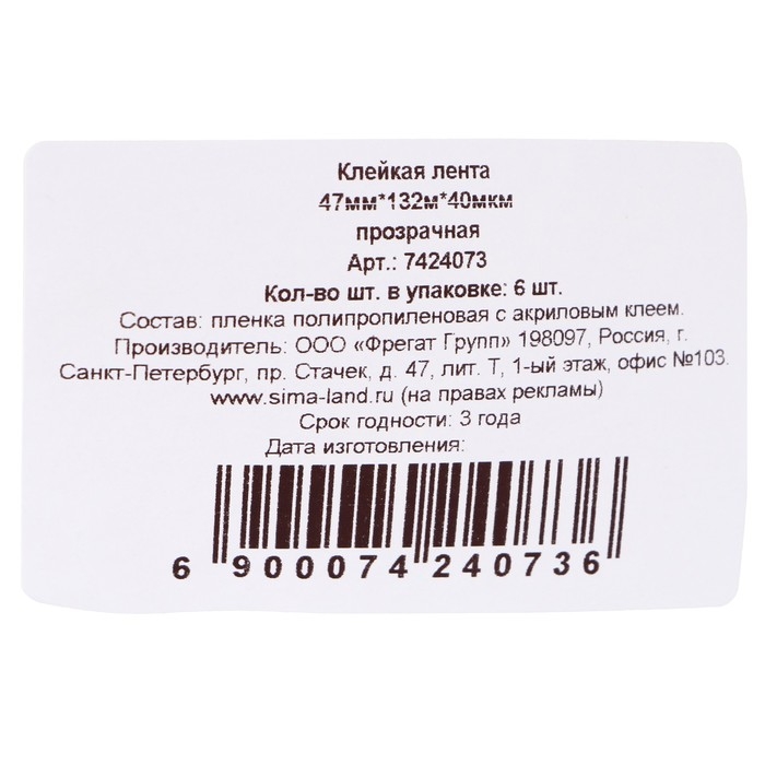 Клейкая лента 48 мм*150 м*47 мкм прозрачный