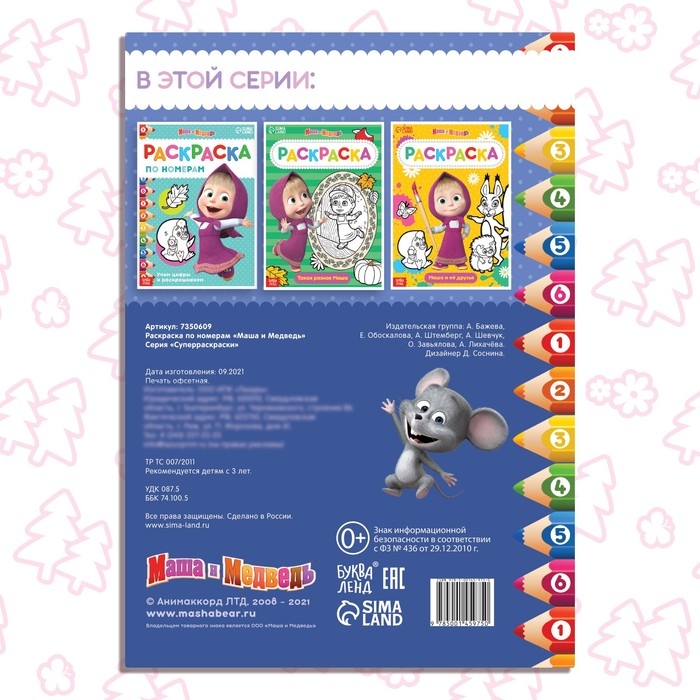 Увлекательная книжка-раскраска «Маша и Медведь» создана специально для творческого развития малышей с раннего возраста.