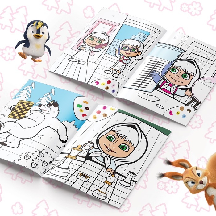 Раскраска по номерам, 16 стр., А4, «Маша и Медведь»