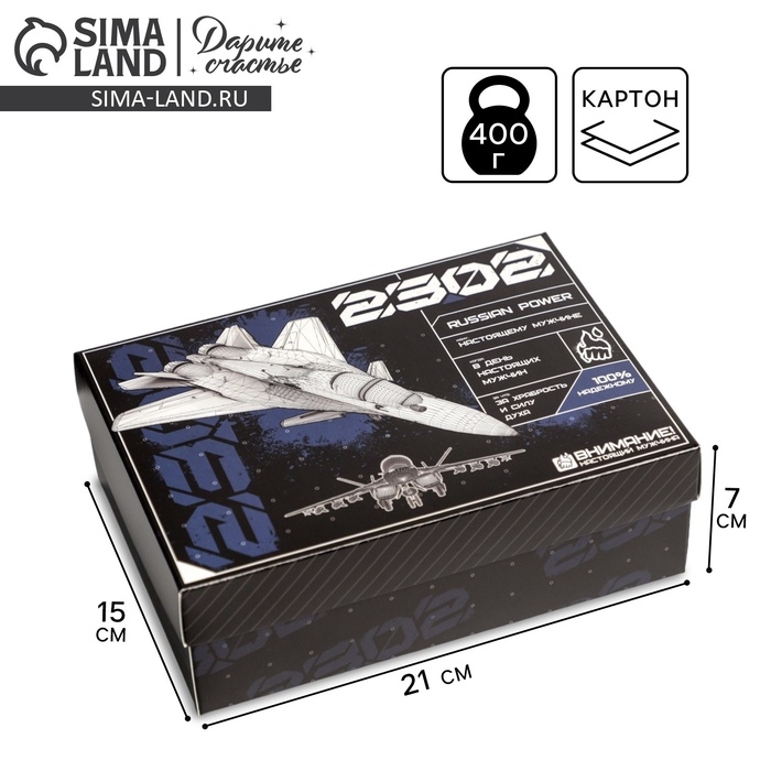 Коробка подарочная складная, упаковка, «23 февраля, самолет», 21 х 15 х 7 см