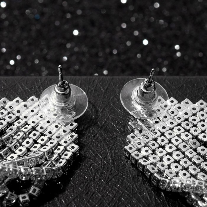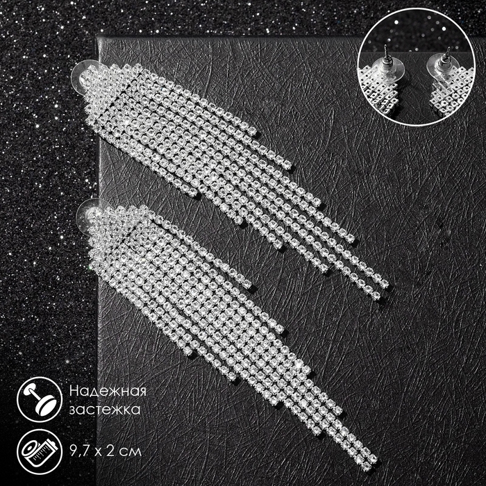 Серьги висячие со стразами «Водопад» пятиугольник, цвет белый в серебре, 9,7 см