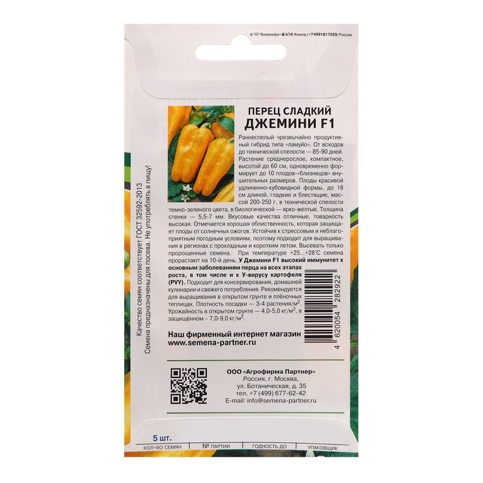 темно-зеленые, в биологической - ярко-желтые. Толщина мясистой стенки 5,5 -7 мм. Вкусовые качества отличные, товарность высокая. Отмечается хорошая облиственность, которая защищает плоды от солнечных ожогов. Устойчив к стрессовым и неблагоприятным погодным условиям, поэтому подходит для выращивания в регионах с прохладным и коротким летом. При температуре +25+28°C семена прорастают на 10-й день. Высевать только пророщенные семена. У Джемини F1 высокий иммунитет к основным заболеваниям перца на всех этапах роста, в том числе и к вирусу картофеля. Подходит для консервирования, домашней кулинарии и свежего потребления. Рекомендуется