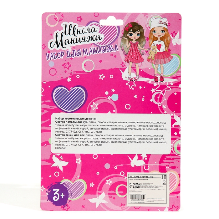 Детская косметика позволит ребёнку устраивать эксперименты со своим стилем. Набор поможет девочке подобрать оптимальные варианты для вечерних и дневных образов. Косметика без труда смывается водой или с помощью ватного диска и безопасна для детской кожи.