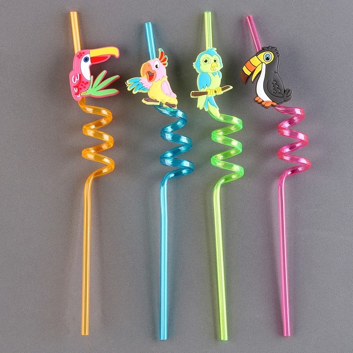 Трубочки для коктейля «Птички» набор 4 шт, цвет МИКС