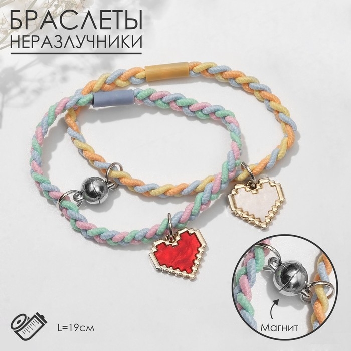 Браслеты «Неразлучники» пиксельные сердца, цветные, 19 размер