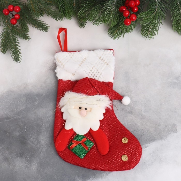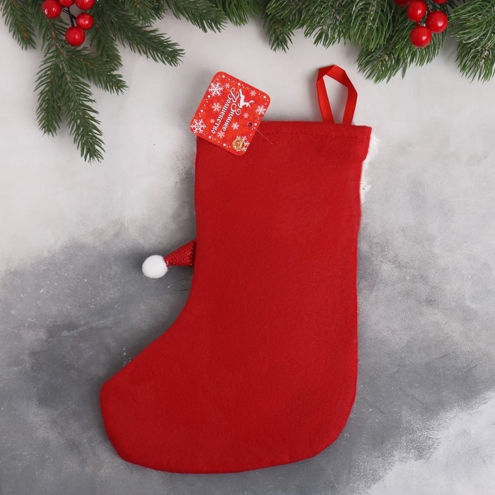 Мягкая подвеска "Носок - Дед Мороз с подарком" 17х26 см, бело-красный